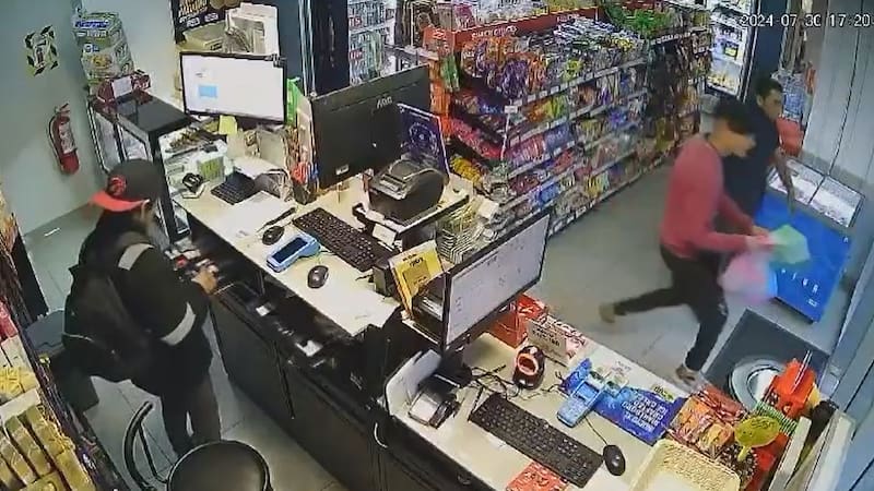 Dicha situación distrajo a los antisociales, quienes intentaron retenerla, y ante el descuido de los mismos, el cajero del local pudo salir por sus medios de la tienda.