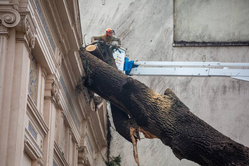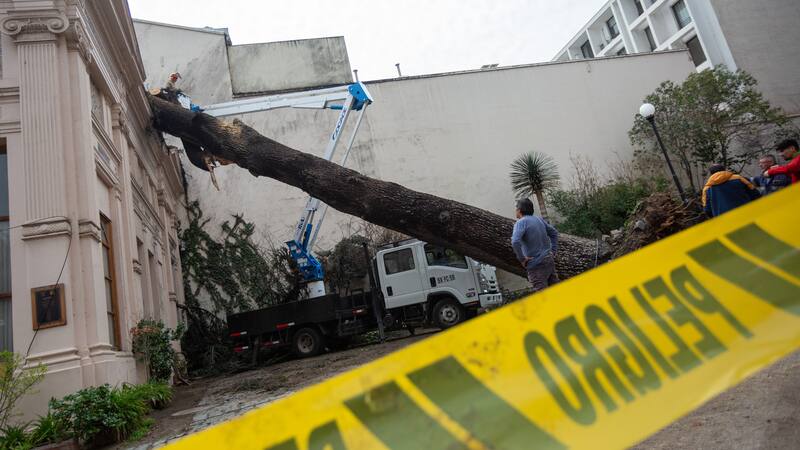 En medio de las lluvias que han afectado a la Región Metropolitana esta semana, un centenario árbol cedió y cayó al costado del histórico Palacio Cousiño, en Santiago, la noche del miércoles.