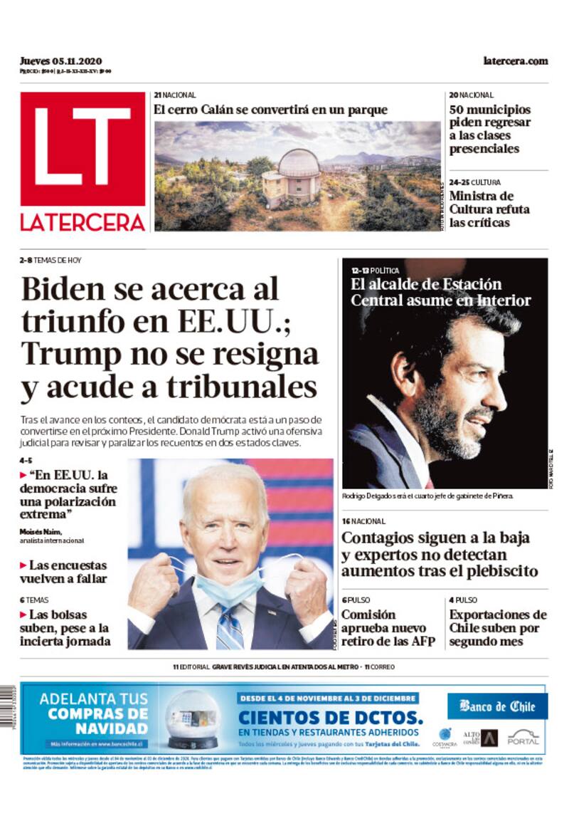 Por Mauricio DonosoLo que tienes que saber este jueves en La Tercera: Biden a un paso de llegar a la Casa Blanca y el nuevo perfil del ministro del Interior