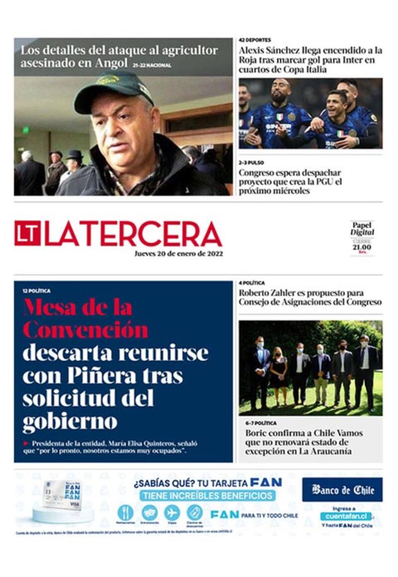 Por Mauricio DonosoLo que tienes que saber este jueves en La Tercera: Boric notifica a Chile Vamos que no prorrogará el estado de excepción y jefe de Defensa de La Araucanía lanza duro emplazamiento a asesinos de últimas víctimas en la zona