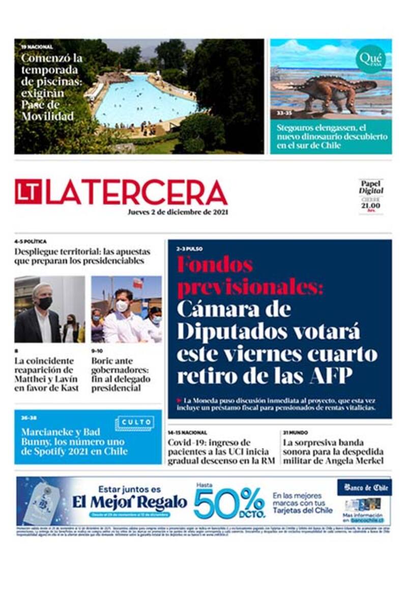Por Mauricio DonosoLo que tienes que saber este jueves en La Tercera: gobierno fuerza votación de cuarto retiro para este viernes en la Cámara y su aprobación se vislumbra compleja