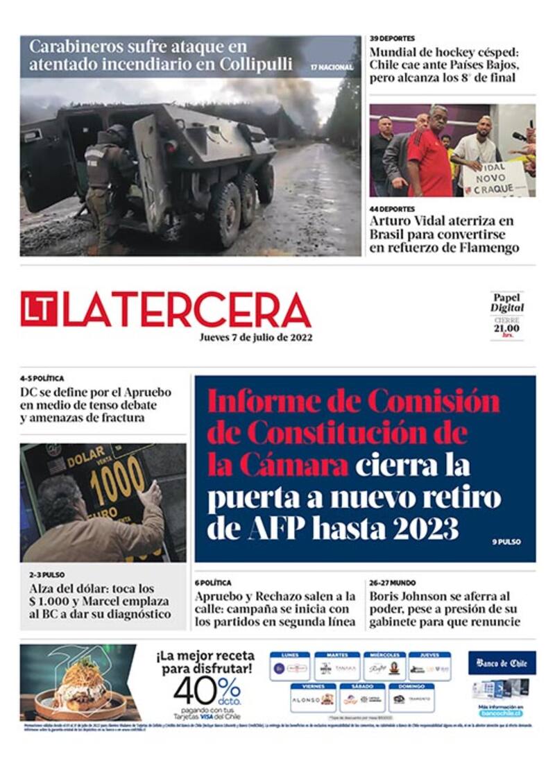 Lo que tienes que saber este jueves en La Tercera: Junta DC resolvió apoyar el “Apruebo” en medio de tenso debate y amenazas de fractura