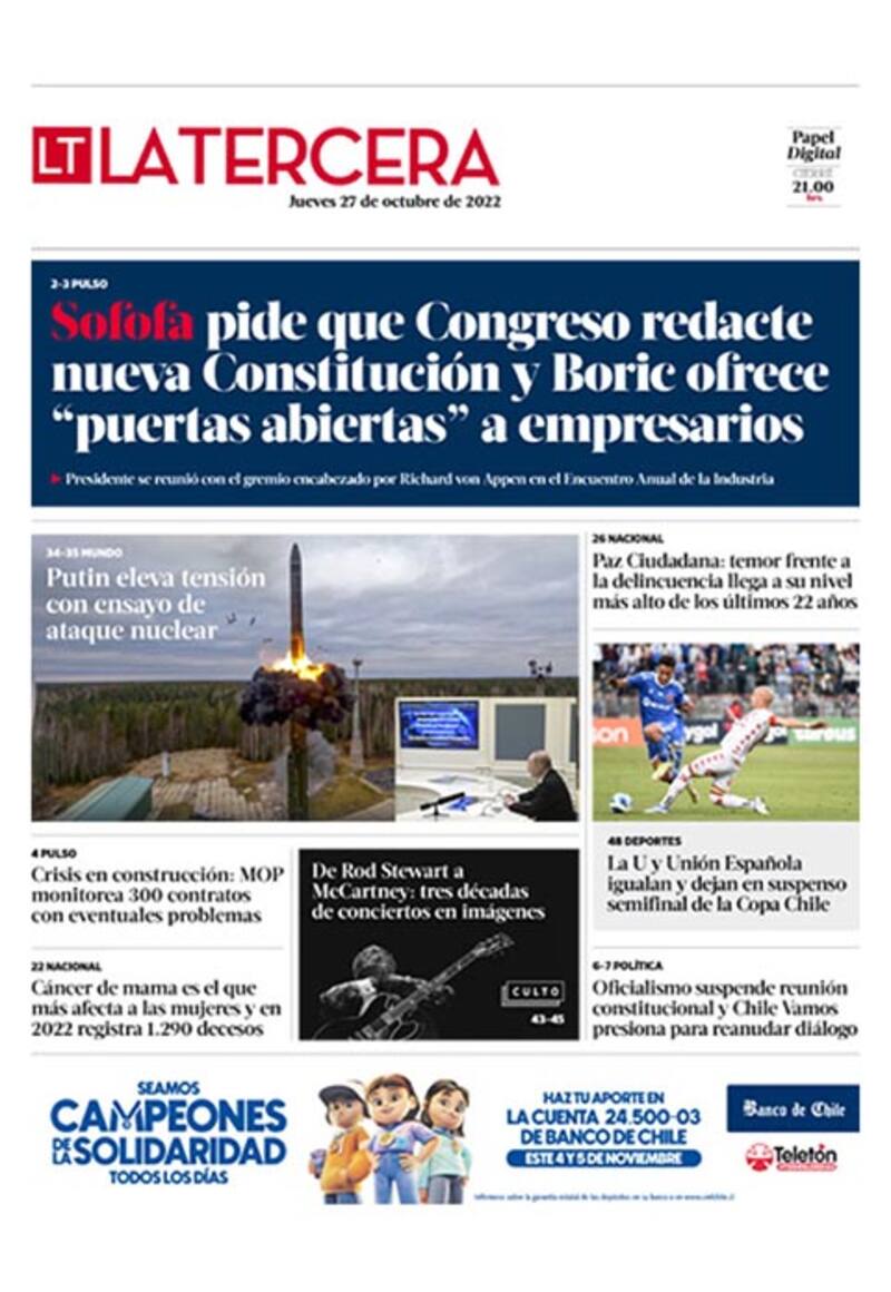 Por Mauricio DonosoLo que tienes que saber este jueves en La Tercera: Presidente Boric dice que en su gobierno los empresarios van a tener las puertas abiertas