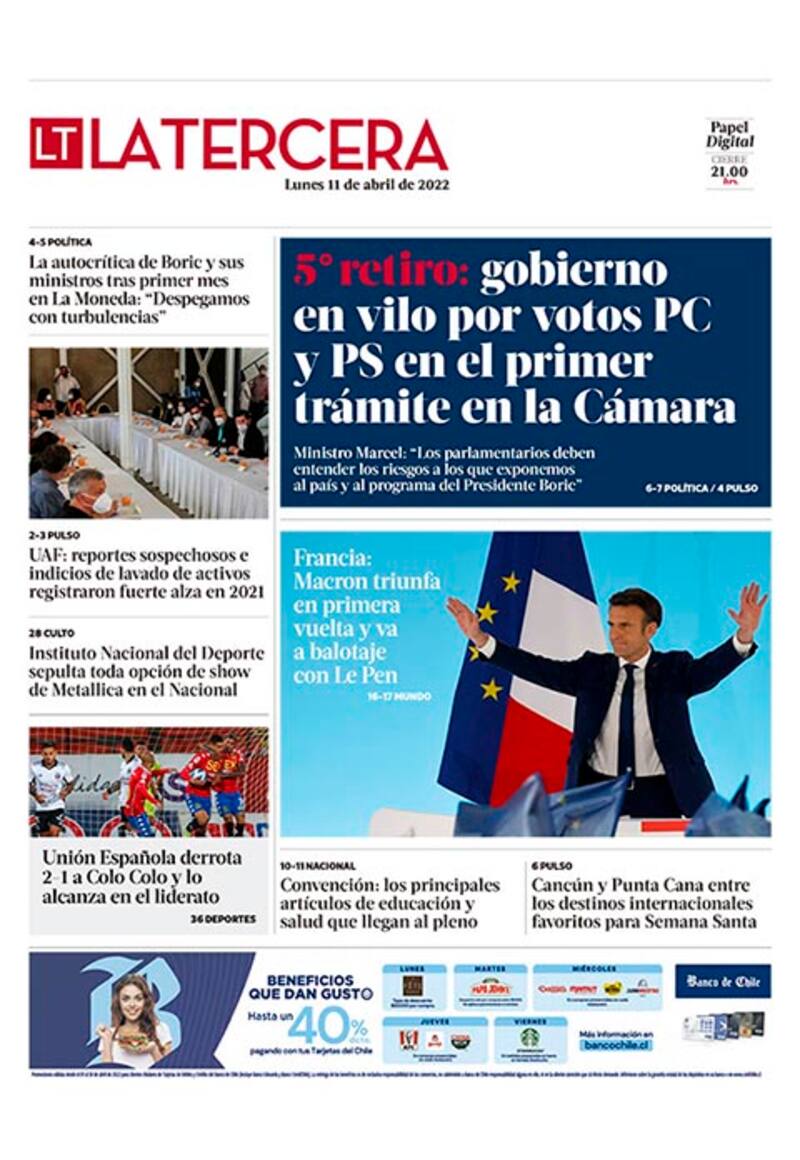 Por Mauricio DonosoLo que tienes que saber este lunes en La Tercera: mañana se vota quinto retiro en comisión de la Cámara y votos PC y PS tienen en vilo al gobierno