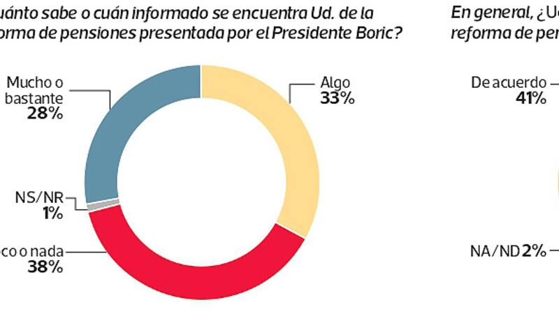 Un empate estadístico entre quienes están de acuerdo con la reforma de pensiones del gobierno (41%) y quienes están en contra (43%) arrojó un sondeo efectuado por Cadem.