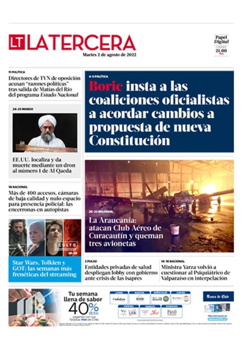 Por Mauricio DonosoLo que tienes que saber este martes en La Tercera: Boric emplaza al oficialismo a acordar las reformas a la propuesta de Constitución antes del plebiscito