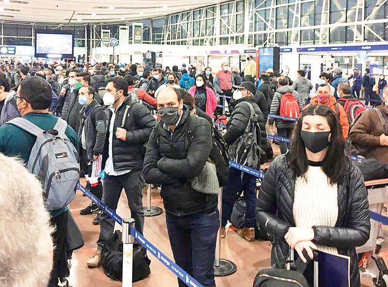 > Pasajeros enfadados: Largas filas para pasar por las aduanas sanitarias dispuestas en el aeropuerto de Santiago provocó que muchos pasajeros perdieran sus vuelos. Aerolíneas recomendaron llegar 4 horas antes al terminal. Sigue leyendo