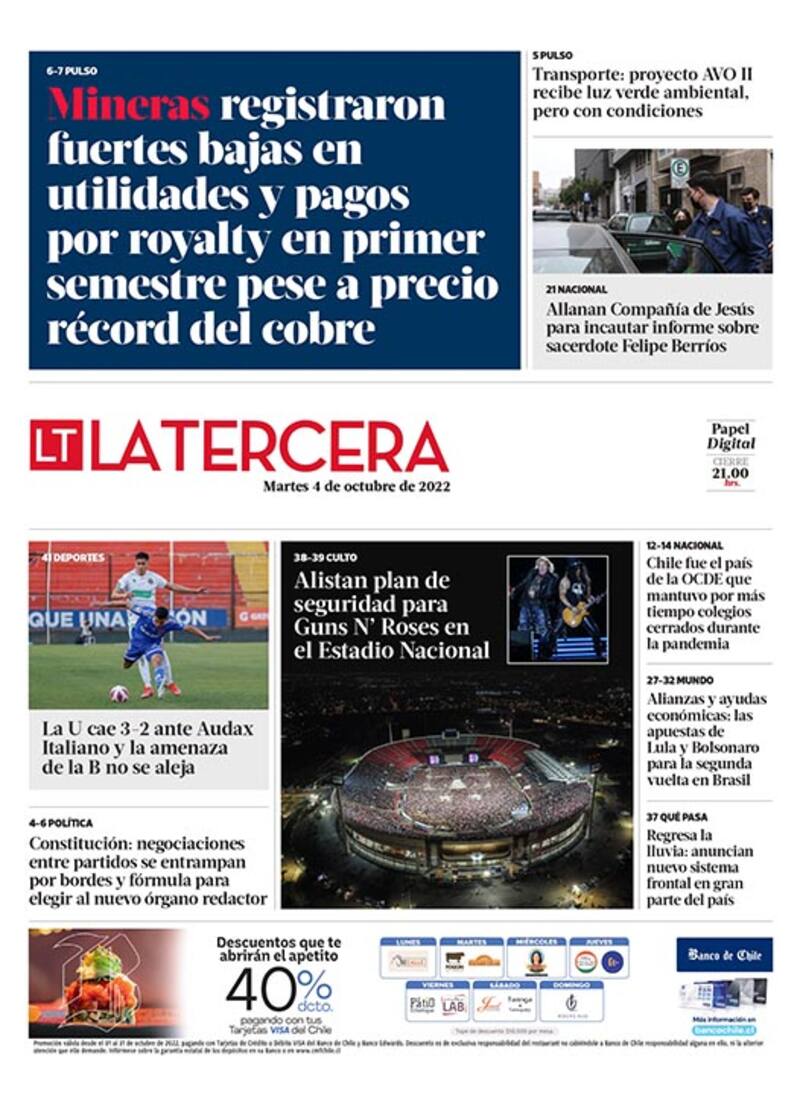 Por Mauricio DonosoLo que tienes que saber este martes en La Tercera: gobierno preocupado por posibles “amarres” constitucionales que afecten su programa