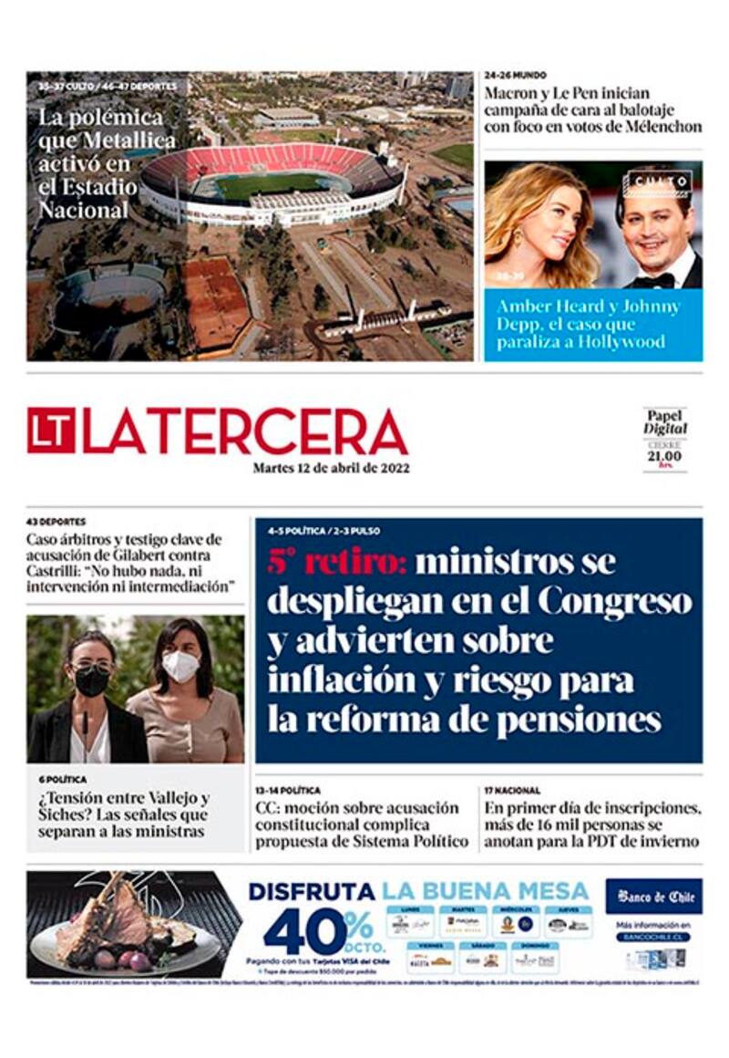 Por Mauricio DonosoLo que tienes que saber este martes en La Tercera: gobierno se abre a evaluar ayudas económicas para frenar quinto retiro