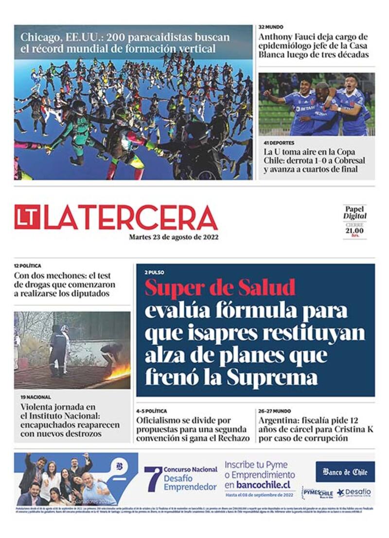 Por Mauricio DonosoLo que tienes que saber este martes en La Tercera: oficialismo se divide frente a cómo conformar una eventual nueva Convención si gana el Rechazo