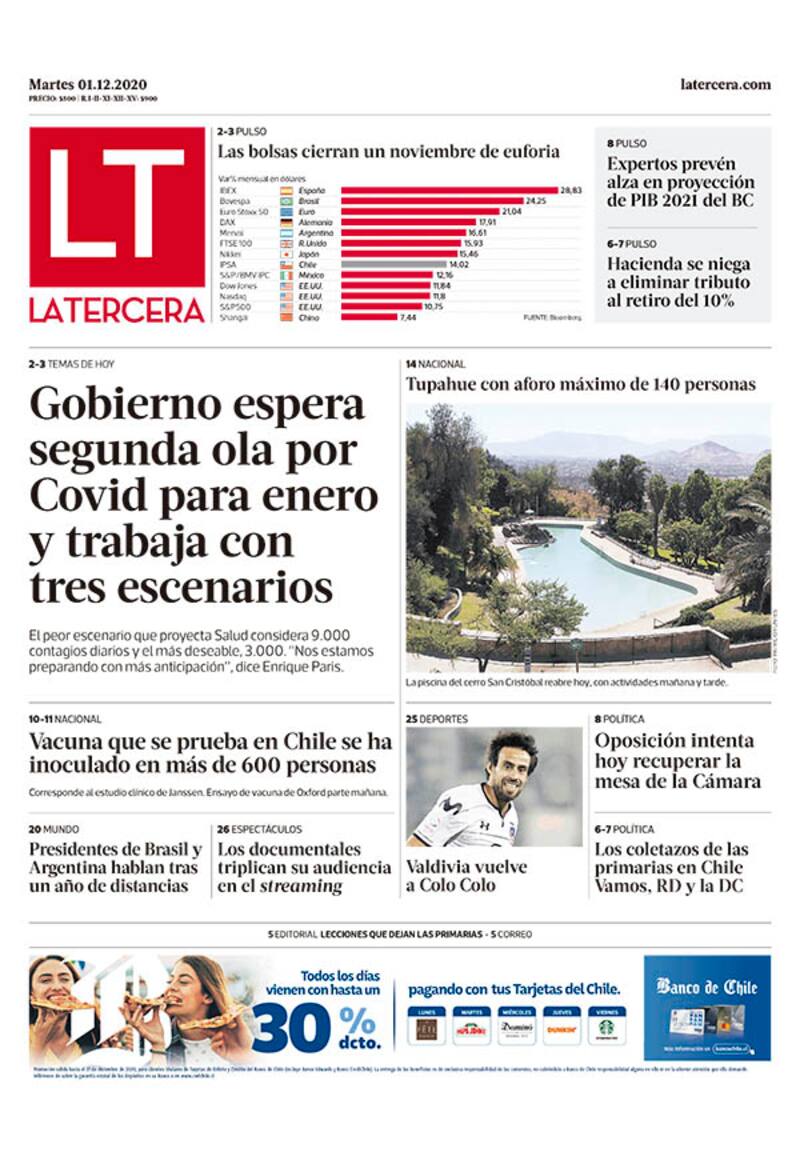 Por Mauricio DonosoLo que tienes que saber este martes en La Tercera: segunda ola de Covid llegaría a Chile en enero y Hacienda no cede en gravar el 10%