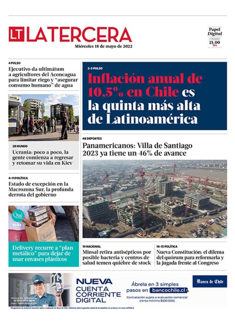 El 10,5% al que llegó el IPC a doce meses en abril convirtió a Chile en el vigésimo quinto país a nivel mundial que exhibe la mayor inflación en el mismo periodo, y el quinto entre naciones latinoamericanas.