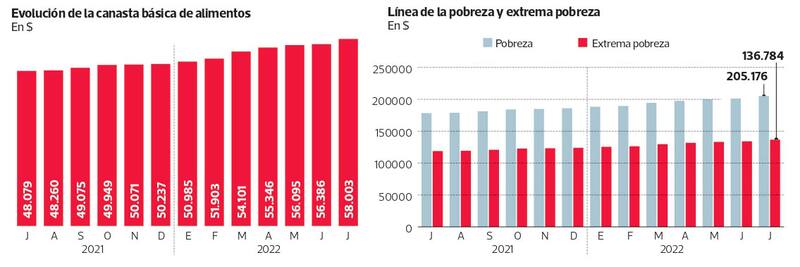Canasta básica de alimentos sube con fuerza en julio y 200 mil personas podrían caer en la pobreza