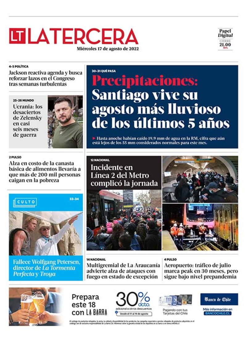 Por Mauricio DonosoLo que tienes que saber este miércoles en La Tercera: Jackson busca reforzar lazos en el Congreso tras dictamen de Contraloría por prescindencia