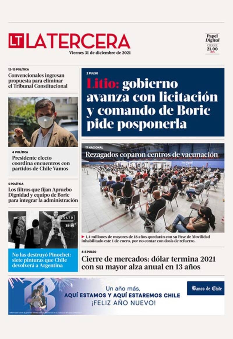 Lo que tienes que saber este viernes en La Tercera: gobierno avanza en la licitación del litio y comando de Boric pide posponer el proceso