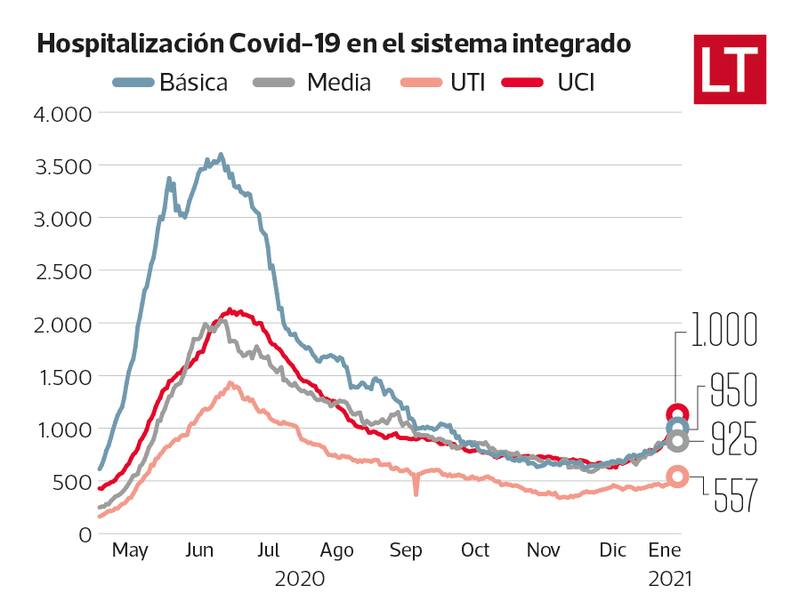 Ayer, por primera vez desde el 26 de agosto, los pacientes con coronavirus en cupos críticos alcanzaron los 1.000. Ante esta situación, el coordinador de las camas críticas del Minsal, Luis Castillo, explica que “de no ponernos todos en campaña de reducir los casos, para febrero vamos a tener los mismos indicadores que en junio. Los mil internados en UCI significan que es una enfermedad que está profundamente activa y que va a seguir llenando nuestras salas de cuidados intensivos”. Castillo agregó que un equipo está monitoreando la situación a nivel nacional, abriendo cupos extras y gestionando traslados de pacientes para asegurarles la atención.