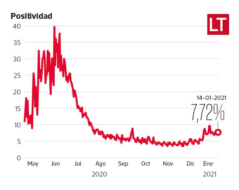 Y es que la continua alza de infectados ha impactado en el número de positivos encontrados en el universo diario de exámenes que se procesan. El mismo informe detalla que este indicador en las últimas siete semanas ha crecido un 84%, pasando de 3,9% a 7,4%.