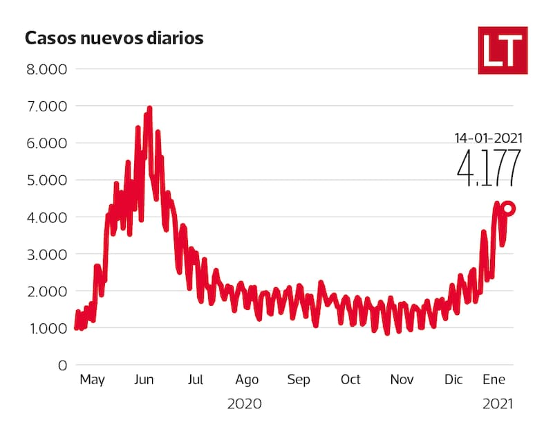 Según Espacio Público, “si se mantuvieran las tasas de crecimiento de la última quincena, en dos semanas tendríamos más de 6.000 nuevos casos diarios y a mediados de febrero estaríamos por sobre los 10 mil”.