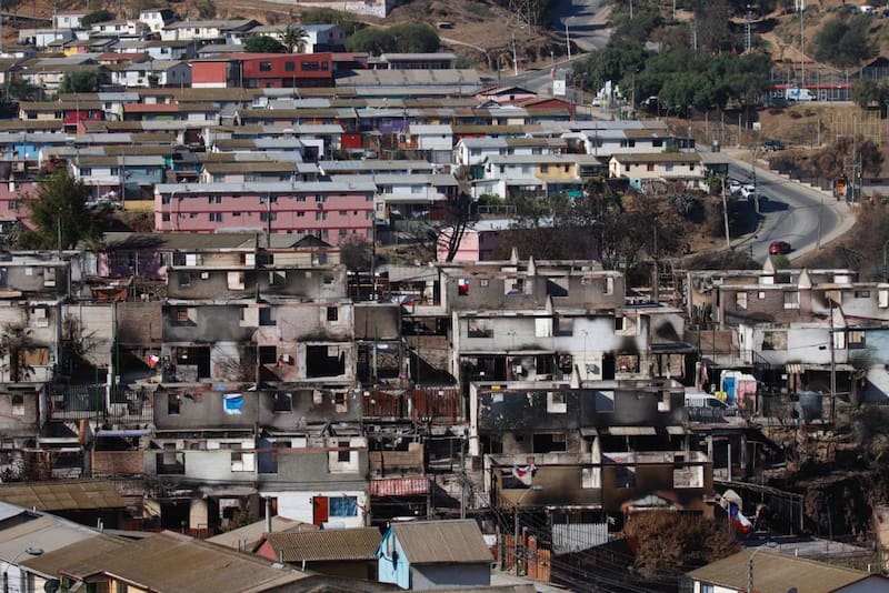 El paso de las llamas del megaincendio en Valparaíso aún son tangibles en el sector El Olivar, en Viña del Mar. A medida que se avanza por la Avenida Tamarugal -una de las que da acceso al sector-, una a una van apareciendo las casas a las que no se les han borrado los efectos de las llamas, con sus exteriores quemados, paredes a medio parar y algunas que derechamente fueron derribadas por completo y solo mantienen las rejas exteriores. En lo que quedó de las viviendas, las familias marcaron con pintura sus apellidos y números telefónicos, con el fin de identificar lo que una vez fue su hogar.