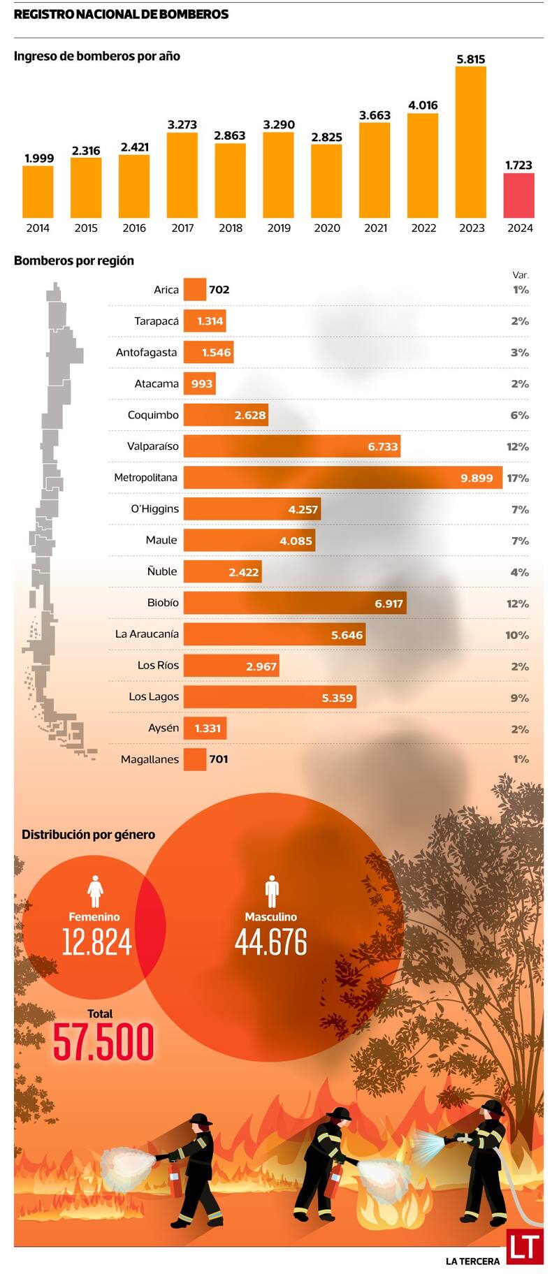 Por Gabriela MondacaBomberos recibió 5.808 nuevos voluntarios en 2023, el año con más ingresos de su historia