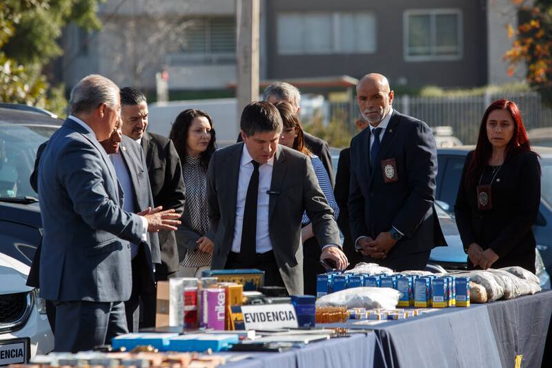 En el cuartel Borgoño de la Policía de Investigaciones, en Independencia, la fiscalía, la policía civil y el subsecretario de Interior, Manuel Monsalve, entregaron algunos detalles del megaoperativo que se realizó el viernes en diversos punto de la Región Metropolitana.