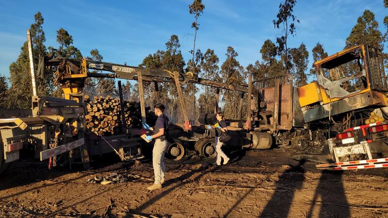 De acuerdo a la información preliminar, los sujetos procedieron a intimidar a los trabajadores de una empresa forestal para posteriormente rociar la cabina de dos camiones y tres máquinas forestales con líquido acelerante, para luego prenderle fuego y se darse a la fuga.
