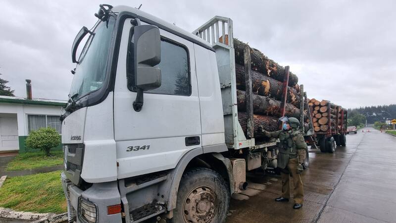 Según se informó, la detención se produjo a las 2.05 de este viernes, a la altura del km 633 de la Ruta 5 Sur, luego de que personal de Carabineros fuera a alertado por vigilantes de la forestal Mininco, quienes denunciaron que el imputado ingresó al predio, cargó la madera y la trasladaba en un camión sin sus placas patente.