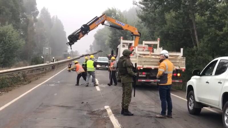 El teniente coronel Eduardo Rosales, prefecto de Malleco de Servicio de Carabineros, precisó que “a la 01.00 de la mañana del día de hoy, se verificó en la ruta 182 que une las comunas de Collipulli con Angol km 5, la presencia de una barricada consistente en neumáticos en combustión. Además, 11 postes del tendido eléctrico derribados, que impedían el tránsito vehicular”.