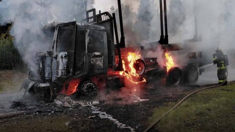 Macrozona sur: queman camiones y maquinaria en faena forestal en Freire