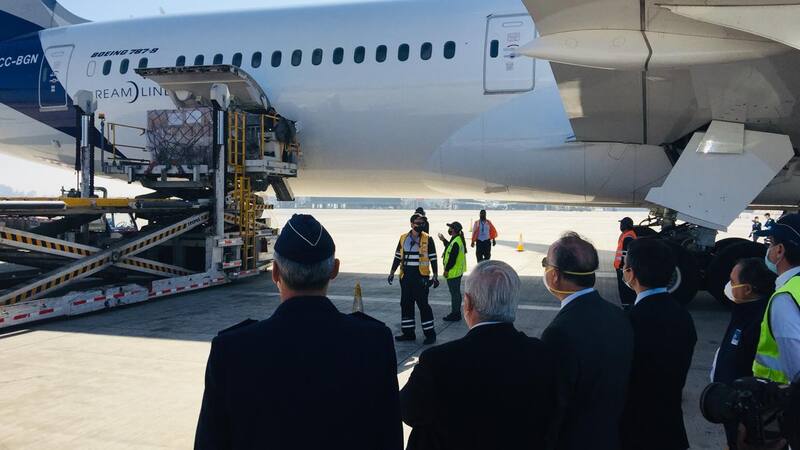 Esta tarde el ministro de Salud, Jaime Mañalich, recibió en el aeropuerto de Santiago un avión que trasladaba donaciones gestionadas por la Embajada de Chile en China con insumos médicos para fortalecer la red de salud del país.