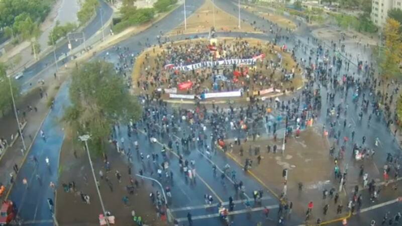 Manifestantes se instalan en rotonda de Plaza Baquedano y se establecen desvíos de tránsito por las protestas en el lugar