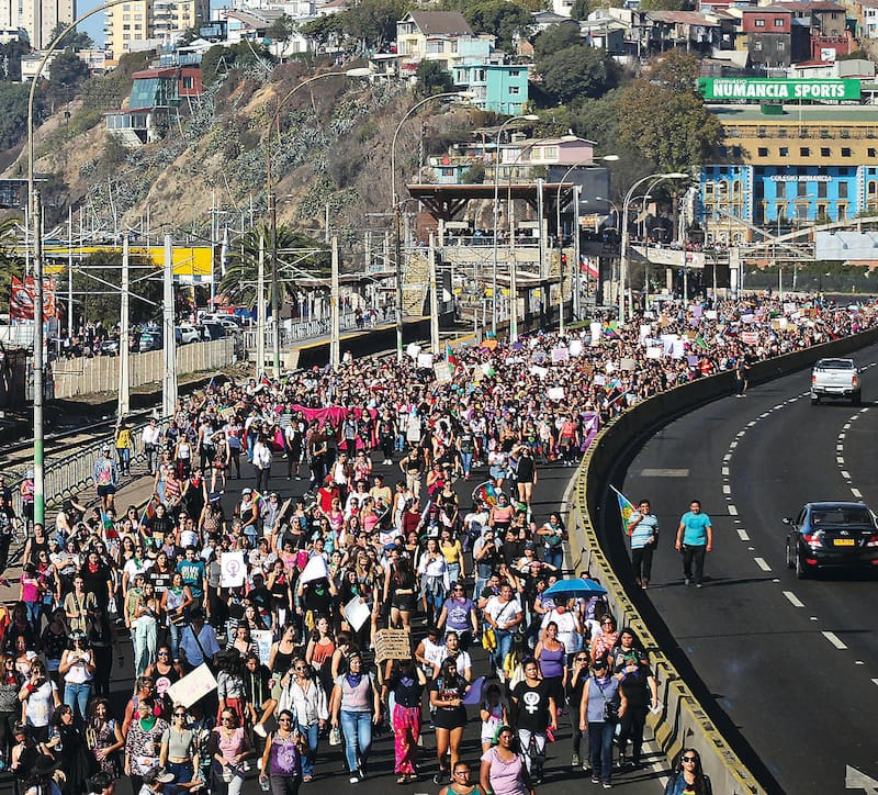 La masividad se repitió por todo el país. En Valparaíso, las organizadoras dijeron que llegaron 20 mil personas, el doble que el año pasado. “Nunca pensé que iba a venir tanta gente”, dijo Belén Estay, una manifestante. Y en Concepción, la jornada comenzó con una cicletada y continuó en la tarde con una marcha con tres mil mujeres. También hubo movilizaciones en Temuco, en lo que ayer fue la tónica de una jornada de movilizaciones que tuvo un único objetivo: avanzar en equidad y erradicar la violencia contra la mujer.