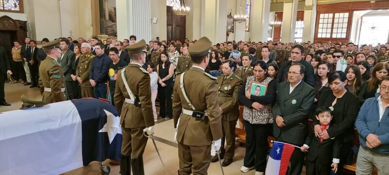 En la Catedral de Rancagua se realizó la misa para despedir al suboficial mayor de Carabineros -ascendido en forma póstuma- Daniel Palma Yáñez. Posteriormente llegaron hasta el Cementerio N°2 de dicha comuna, donde despidieron al funcionario policial.