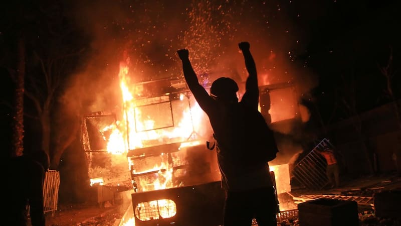 En el transcurso de la noche, los enfrentamientos entre manifestantes y personal policial continuaban ocurriendo en ese sector.