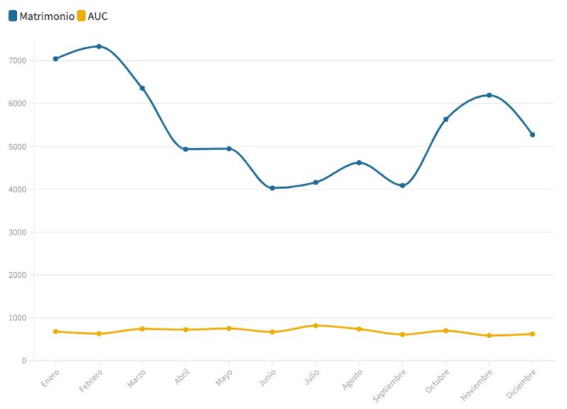 De hecho, los matrimonios se redujeron en un 38% y los AUC en un 34% en relación a 2019.