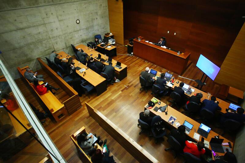Pero antes de aquello, y al igual como ocurrió en las dos jornadas anteriores, los tres ex altos oficiales ingresaron por el estacionamiento del Centro de Justicia minutos antes de que en la sala 103 del edificio C el juez Cristián Sánchez retomara la audiencia de formalización, la que se inició con la revisión de dos requerimientos planteados por la defensa de Rozas, la abogada Susana Borzutzky y Felipe Barruel, quienes cuestionaron el número de querellantes y pidieron al tribunal que se fijara un “procurador común”.