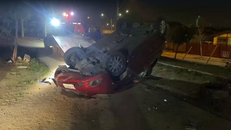 La persecución se efectuó desde Quilicura hasta Renca, en esta última comuna el conductor del automóvil perdió el control y chocó con un poste, provocando el volcamiento del vehículo, “verificándose al interior la participación de tres sujetos dos hombres y una mujer, todos menores de edad”, sostuvo Vega.
