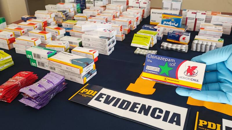 De acuerdo con un análisis realizado por la Policía de Investigaciones, la problemática ha ido en ascenso. Entre los fármacos decomisados aparecen con mayor frecuencia el paracetamol, ibuprofeno, diclofenaco e inductores del sueño como la zopiclona y quetiapina, por lo que expertos también advierten riesgos para la salud.