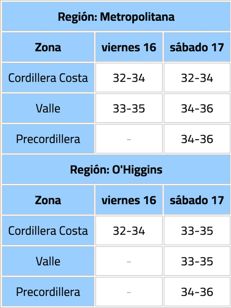 La Dirección Meteorológica de Chile (DMC) emitió la tarde de este jueves una alerta por un evento de altas temperaturas que afectará a las regiones Metropolitana y de O’Higgins.