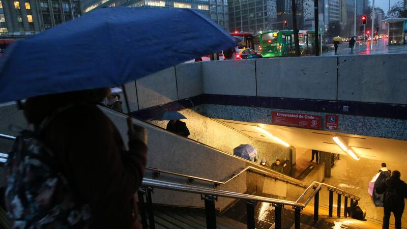En virtud de ello, Metro de Santiago informó que activó su “Programa lluvia”. Según explicaron desde el tren subterráneo, esto consiste en que “los trenes estarán operando con velocidad reducida”.