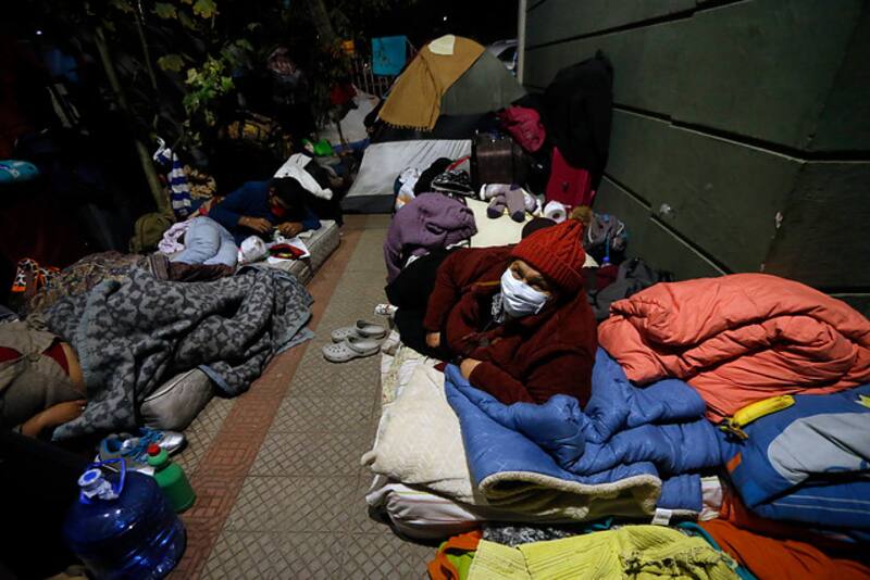 Con la cuarentena que comienza el viernes en la noche en Providencia -y en gran parte de la RM- no saben qué harán. Las opciones no son muchas. Muchos de los venezolanos que están acampando en calle Bustos no tienen dinero tras haber perdido sus trabajos con el inicio de la pandemia. La lista para acceder a un vuelo humanitario -que ya tiene a más de 2 mil personas en fila- sigue aumentando, y aún no hay luces de cuándo podría llevarse a cabo.