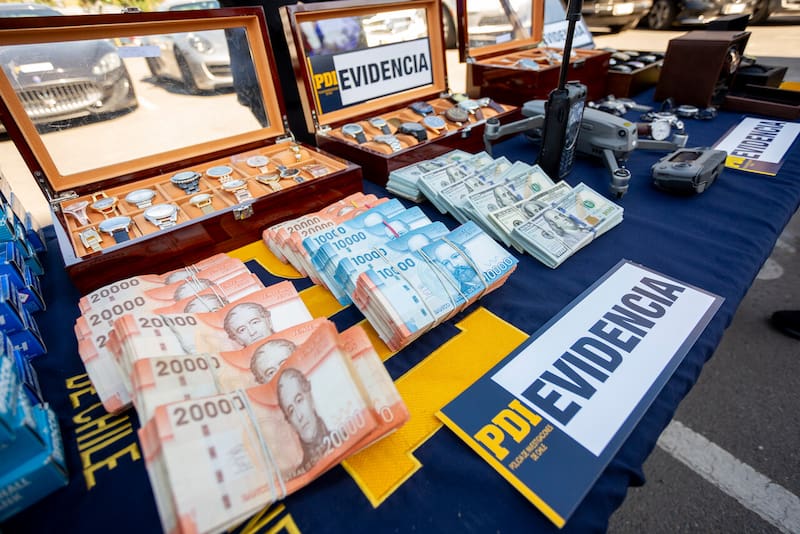 En total, la PDI avaluó todos los objetos incautados en cerca de 27.000.000.000. “Las organizaciones criminales no solamente están para generar violencia explícita, con balaceras, disputas de territorios, sino que con este tipo de organizaciones que tanto afectan al patrimonio fiscal. Este es el fraude más grande que se ha establecido en la historia de nuestro país”. Muñoz dijo que se trataba de un “gran golpe a la delincuencia criminal organizada”.