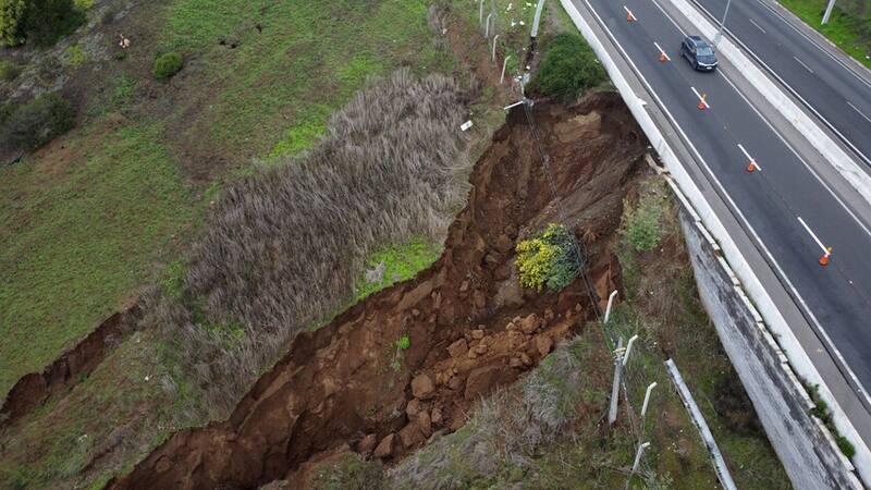 El socavón de 20 metros que apareció bajo de la Ruta F-30, o Camino Internacional, es en consecuencia de las lluvias que se han registrado desde la semana pasada en la Región de Valparaíso. Ubicado cerca de la refinería ENAP, y ocasionado por la erosión del agua.