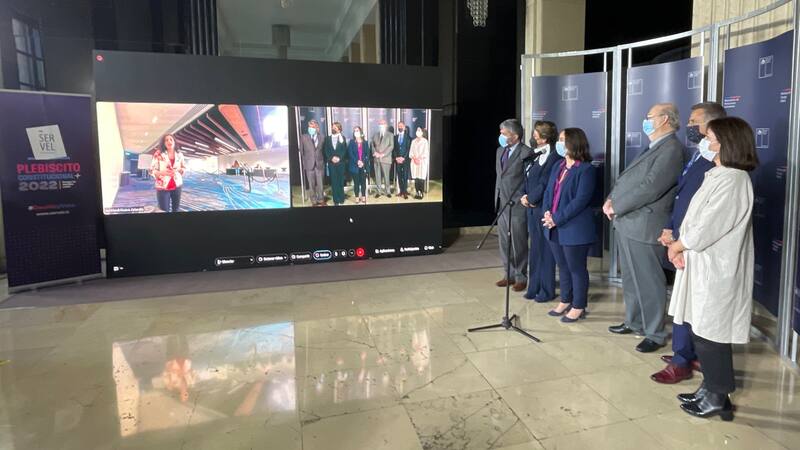 Entre las autoridades presentes, además, se encontraban el presidente del Consejo directivo del Servel, Andrés Tagle, y Carmen Gloria Valladares, secretaria relatora del Tribunal Calificador de Elecciones (Tricel).