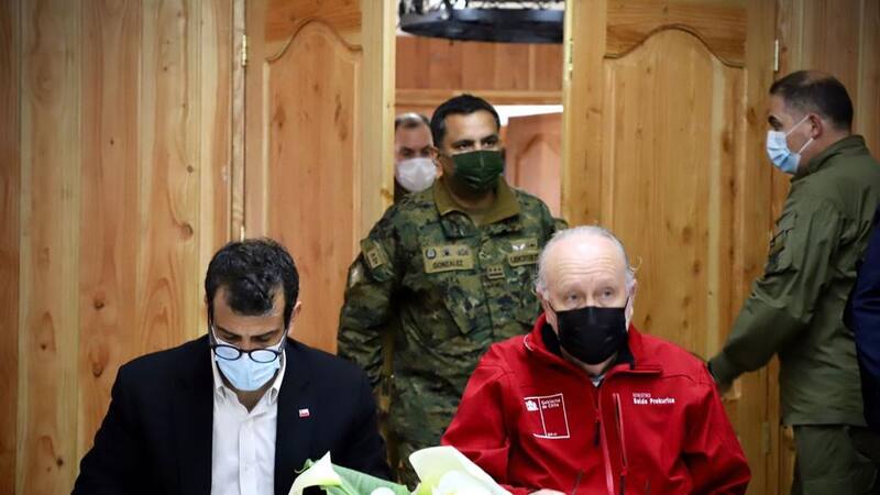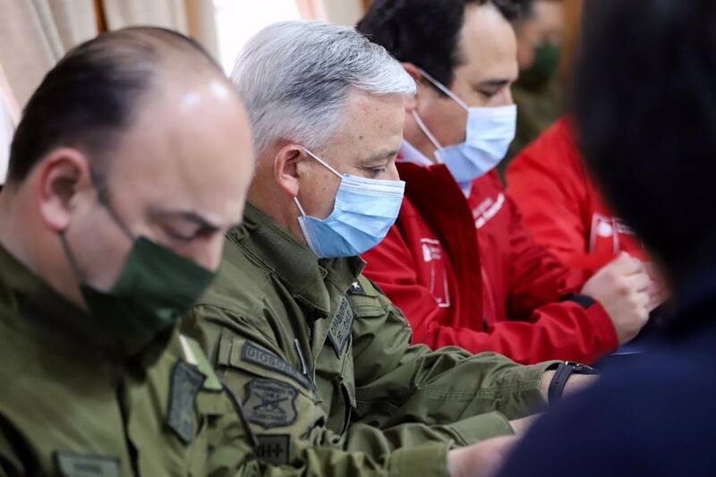 En el encuentro liderado por los ministros participaron los jefes de la Defensa Nacional -nombrados tras el decreto de estado de emergencia-, el almirante Jorge Parga de Biobío, y el general Lionel Curti de La Araucanía.