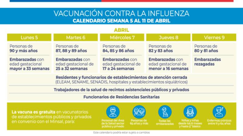 La autoridad sanitaria detalla las fechas correspondientes a la dosis anual contra este virus. El proceso de inoculación se desarrollará en paralelo a la vacunación contra el Covid-19, el que está en curso desde enero.