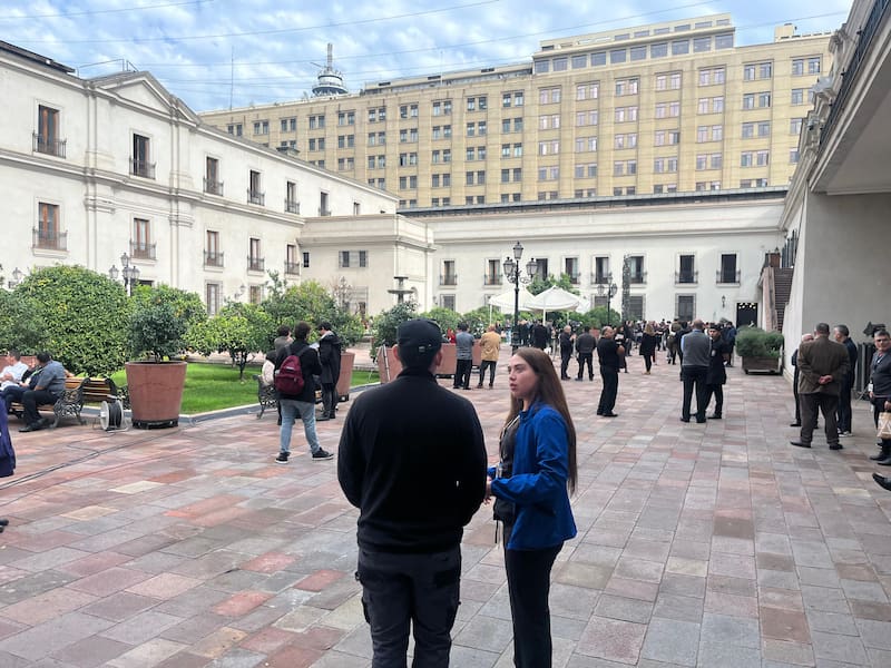 A raíz de la emergencia es que se ha realizado una evacuación preventiva en La Moneda, por lo cual los funcionarios se encuentran en el Patio de los Naranjos.