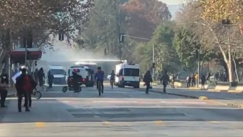 Carabineros llamó a los conductores a preferir vías alternativas. Personal policial actuó con carros lanzagua y gases para dispersar a manifestantes.