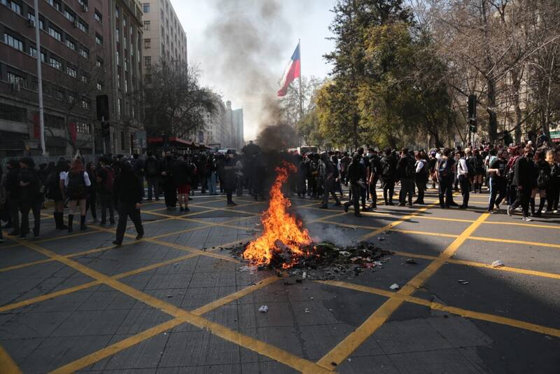 En paralelo, se informaba de incidentes en cercanías de establecimientos emblemáticos de la comuna de Santiago, como el Instituto Nacional General José Miguel Carrera, el Internado Nacional Barros Arana y el Liceo Barros Borgoño.