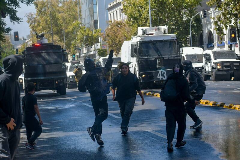Avanzada la marcha, en algunos puntos de la principal arteria capitalina se registraron incidentes, donde manifestantes se enfrentaron a Carabineros. Personal policial debió intervenir con carros lanzagua.